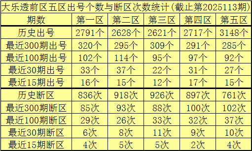 李老头大乐透第2025114期前区五区奖号分析: