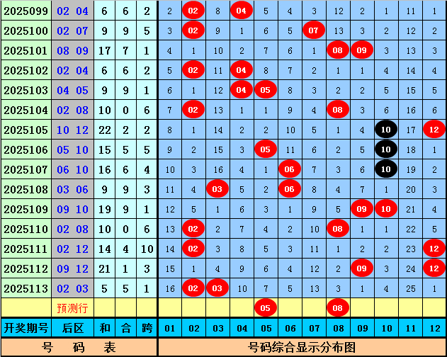 后区分析:上期后区奖号为02+03,开出全小组合,上周三后区奖号开出02+08,最近十周三后区奖号大小比为11:9,大小 号码走势基本相当,本周三看好大小 号码继续平衡,关注两码05、08。